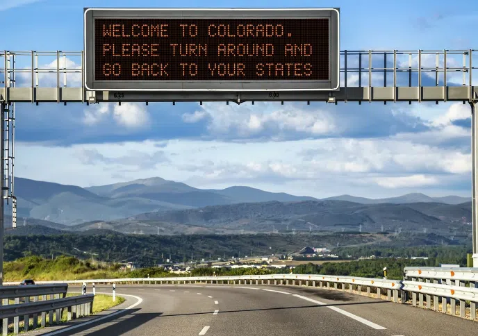 “Welcome to Colorado. Please turn around and go back to your states.” the sign read.