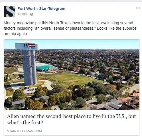 Allen, TX Ranked No. 2 As The Best Place to Live in the U.S.