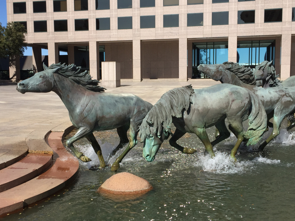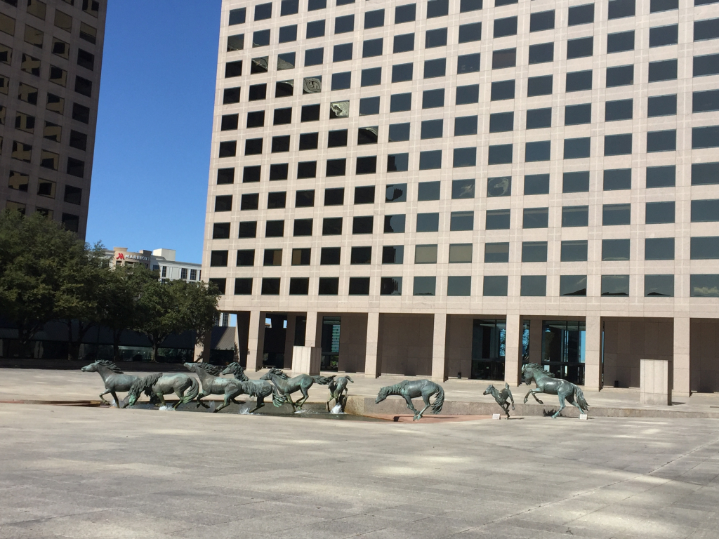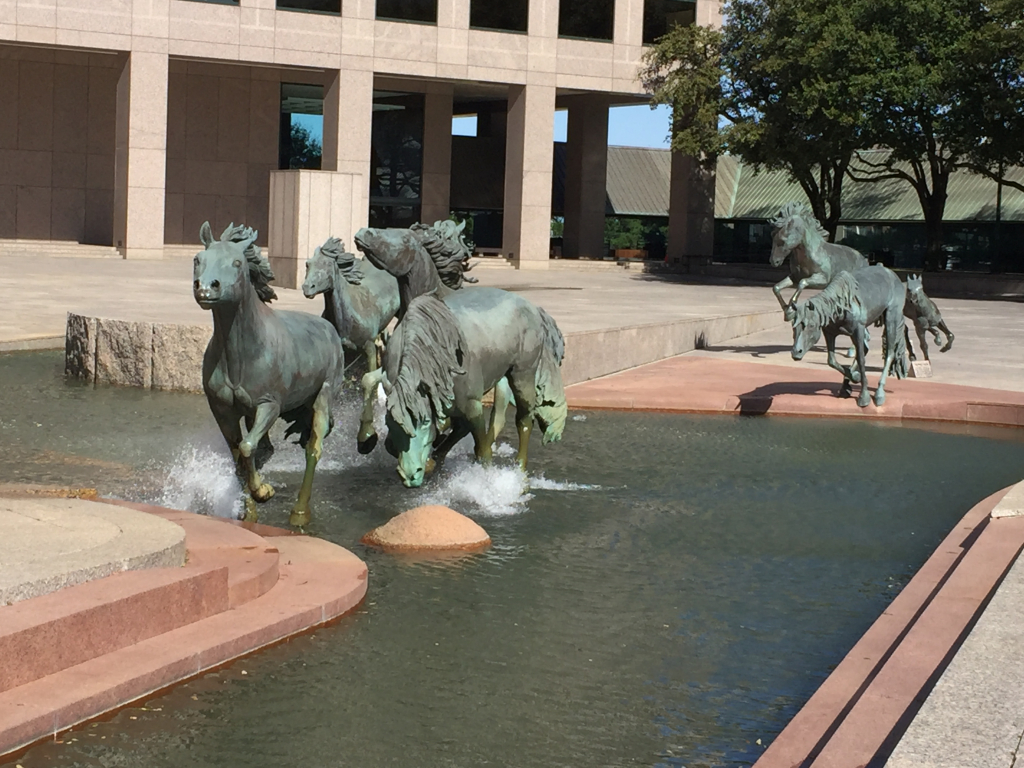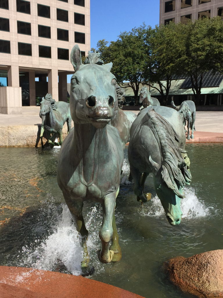 My wife Sharon and I finally went to see the Mustangs Of Las Colinas (in Williams Square in Irving) yesterday. Absolutely beautiful! The realistic details were impressive; right down to them ‘splashing’ through the water.