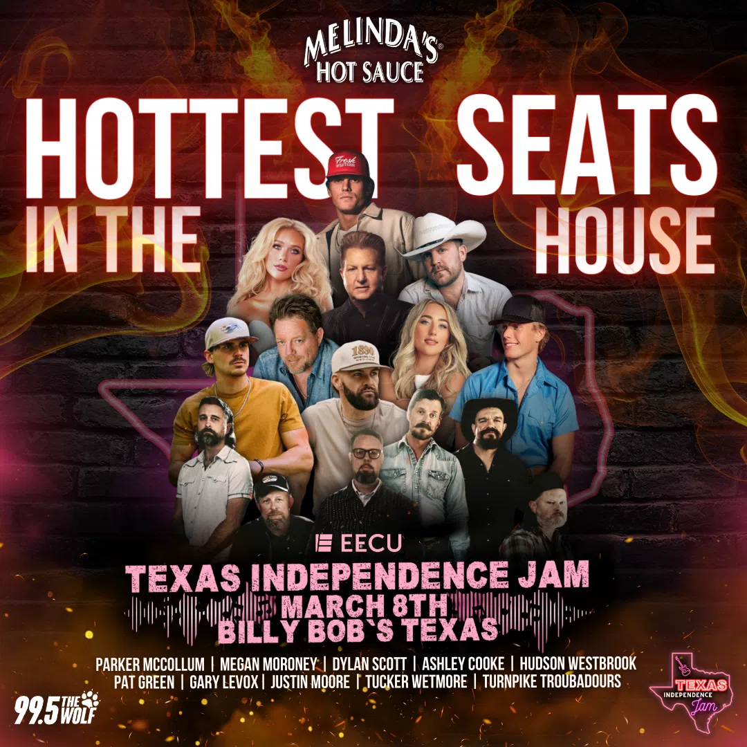 Win Melinda’s Hottest Seats in the House! We’re turning up the heat for 99.5 The Wolf’s EECU Texas Independence Jam on March 8th at Billy Bob’s Texas — and YOU could score the most legendary seats in the building! Catch an incredible night with some of country’s biggest hitmakers, all on one stage.
