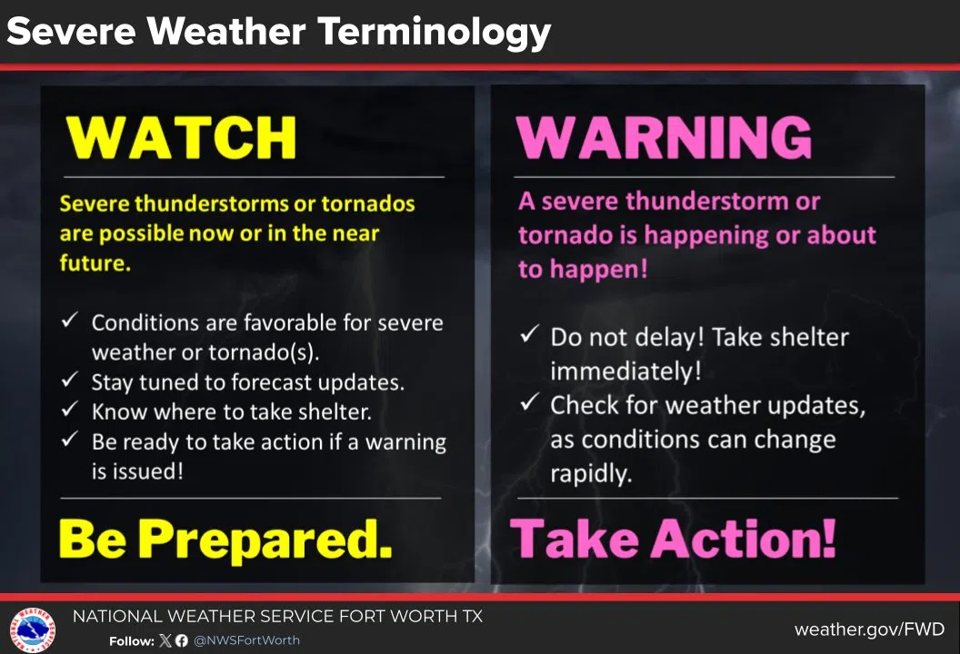 It’s Severe Weather Awareness Season! If you’re new to DFW, you may not be aware of the Severe Weather terminology. Do you know the difference between a watch and a warning? Knowing the difference will help you decide what actions you should take (if any) during hazardous weather.