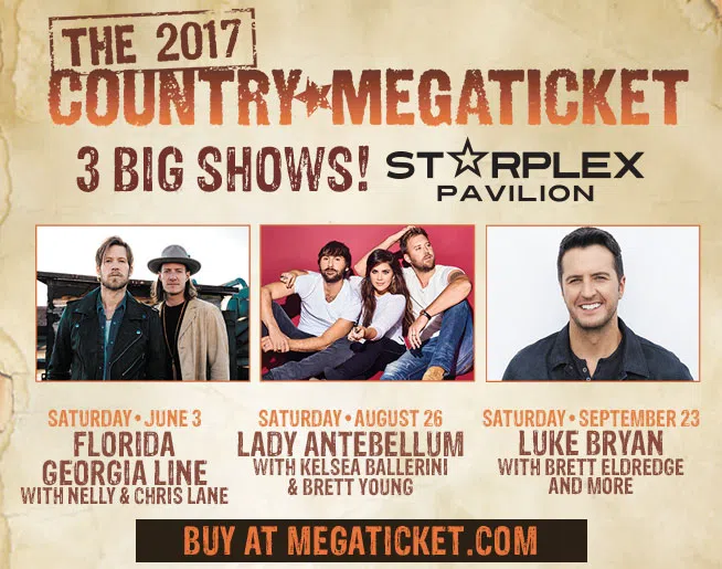 Get your tickets here! Live Nation and Starplex Pavilion proudly announce the 2017 Country Megaticket. Each Megaticket includes one concert ticket to three of the hottest country concert...
